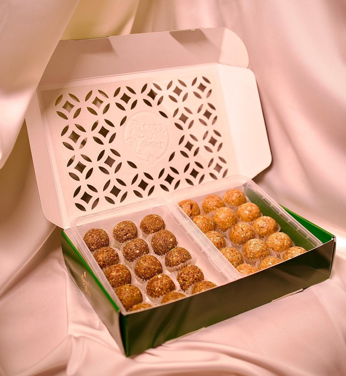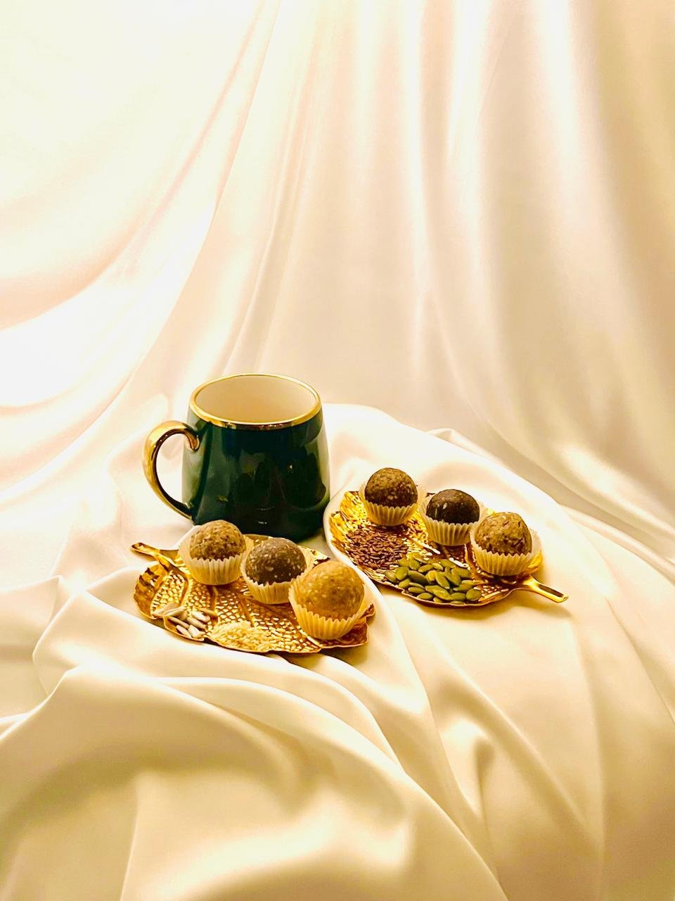 Our Seed Cycling Bites are personalized, nutritionist-guided formulations designed to support hormonal balance in sync with a woman’s natural cycle. Each box contains 30 thoughtfully crafted bites—typically one set of 15 for the follicular phase and another for the luteal phase—aligned with the body’s hormonal rhythm. These bites are made using a balanced combination of therapeutic seeds, nourishing nuts, natural flours, functional super herbs, and gentle cooling agents, while avoiding excess heat in the body.
