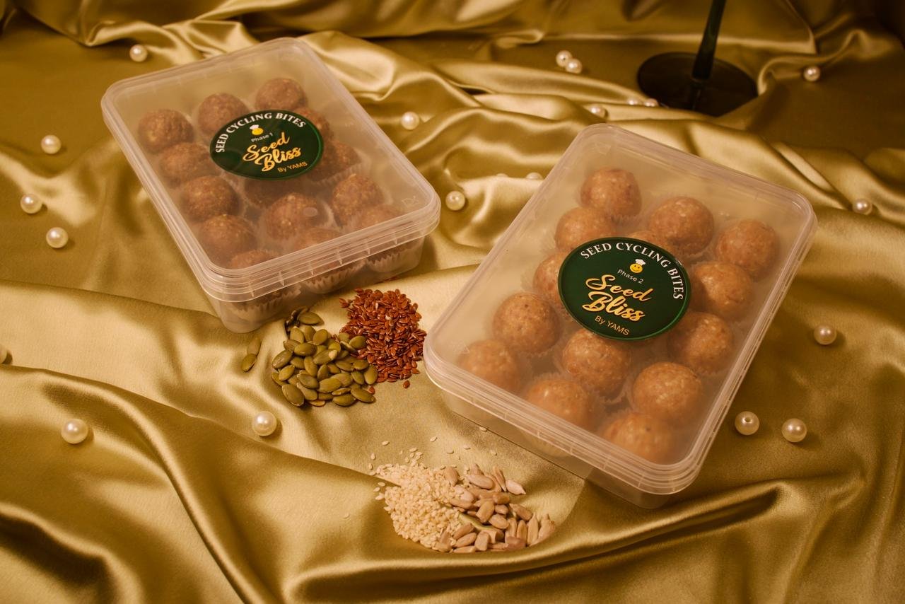 At Seed Bliss By Yams, We create personalized seed cycling bites designed to support hormonal balance across every life stage — from PCOS and PMS to fertility, perimenopause, and menopause. Each box is thoughtfully crafted to align with your body’s natural rhythm, making hormonal care simple, nourishing, and effective.